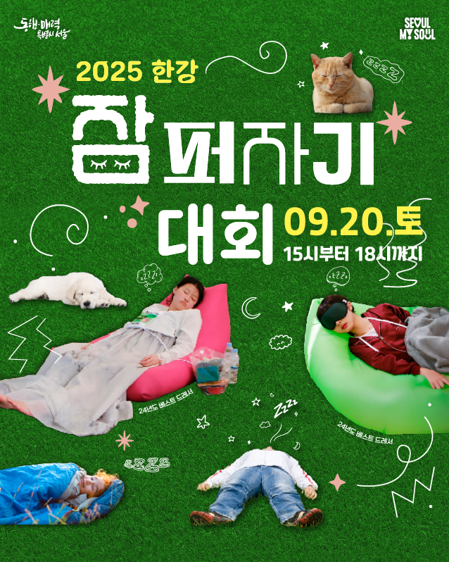 책만 펼치면 잠이 오는 사람들을 위한 대회가 한강에서 열립니다. 일명 '2025 한강 잠퍼자기 대회'가 다가오는 9월 20일 한강에서 진행되는데요, 신청 방법과 함께 즐길 수 있는 여러 행사를 소개해드리겠습니다.