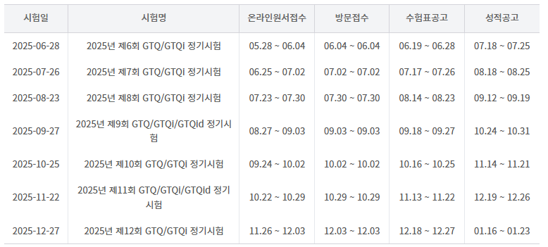 GTQ시험에 응시하기 위해서는 원서접수 기간에 맞추어 신청을 진행해야합니다. 신청은 온라인 접수와 현장 방문접수가 모두 가능합니다. 보통 온라인 접수는 시험일 기준 한달전에 약 1주일간 진행되며, 방문접수는 한달 전 특정일을 정하여 1일간 접수를 받고 있습니다.